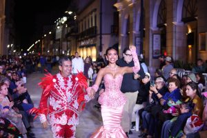 La zona peatonal de la avenida Independencia se convirtió en pasarela festiva, prolongando la alegría el Zócalo hasta el Centro Histórico. La Corte Real electa 2026, la presidenta del DIF municipal, Daniela Lily Hernández y la directora de Cultura y Recreación, Indira Domínguez Marín, acompañadas por jarochos y jarochas, presenciaron el derroche de creatividad.